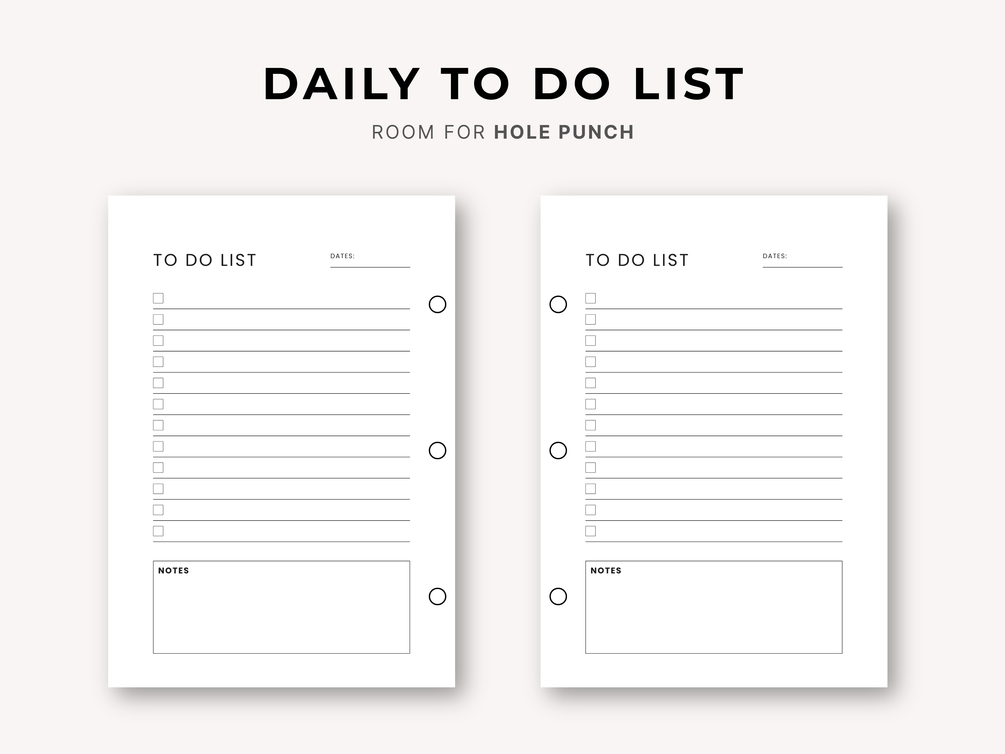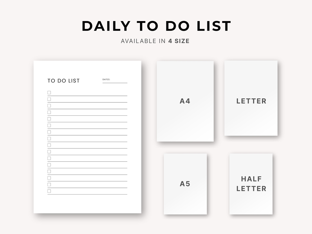Printable To-Do List | Daily Task Planner (A4, A5, US Letter, Half Letter)